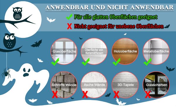 • Μέγεθος: Αποκριάτικα αυτοκόλλητα παραθύρου, που αποτελούνται από 10 αυτοκόλλητα, το καθένα 21 x 29,5 cm