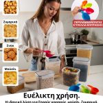 Το σετ μας είναι ιδανικό για την αποθήκευση σνακ, όπως γλυκίσματα, γκρανόλα, ξηρούς καρπούς και μπισκότα, βασικών τροφίμων όπως το αλεύρι, και τροφίμων για πρωινό, όπως ο καφές. Η αποθήκευση σε αυτά τα διαφανή δοχεία είναι εύκολη, τα τρόφιμα θα είναι καλά οργανωμένα και πάντα στη διάθεσή σας. Ποτέ ξανά δεν θα ξεχάσετε πού έχετε αποθηκεύσει κάτι!