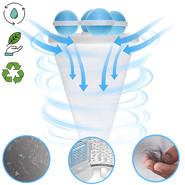 Απλά τοποθετήστε το φίλτρο στο πλυντήριό σας πριν ξεκινήσετε τον κύκλο πλύσης. Αφήστε το να επιπλεύσει, να συλλέξει τα υπολείμματα και να διατηρήσει τα ρούχα σας φρέσκα. Μετά το πλύσιμο, καθαρίστε το φίλτρο και είναι έτοιμο για την επόμενη χρήση!