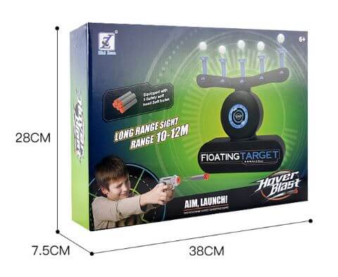 - Περιεχόμενα συσκευασίας: 1 Παιχνίδι αιωρούμενης σκοποβολής, 1 Παιχνίδι πιστόλι, 3 Παιχνίδι σφαίρες