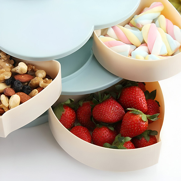 🌟 Περιστρέψτε το καπάκι για να αποκαλύψετε διαμερίσματα ιδανικά για μπισκότα, φρούτα και άλλα.