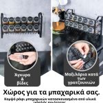Ο εκπληκτικός σχεδιασμός και η λειτουργικότητά του καθιστούν αυτό το ράφι μπαχαρικών το τέλειο δώρο για κομψούς επαγγελματίες και οικιακούς μάγειρες.