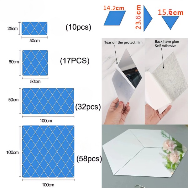 Υλικό: Ακρυλικός καθρέφτης με προστατευτική μεμβράνη (αφαιρέστε το πριν από τη χρήση).