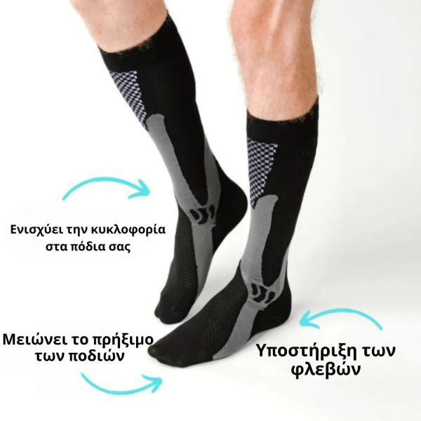Αυτές οι κάλτσες συμβάλλουν στη βελτίωση της ροής του αίματος, πράγμα που σημαίνει λιγότερη κόπωση και περισσότερη ενέργεια για την ημέρα σας. Ιδανικές για πολλές ώρες στα πόδια σας ή για έντονη σωματική δραστηριότητα.