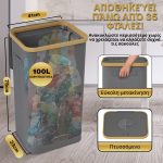 • ΧΩΡΗΤΙΚΟΤΗΤΑ 100L: Παρέχει αρκετό χώρο για μεγάλες ποσότητες ανακυκλώσιμων υλικών, από γυαλί έως πλαστικό. Η εσωτερική σακούλα επιτρέπει εύκολη αφαίρεση, καθαρισμό και οργάνωση.