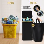 Αποθηκεύει μεγαλύτερη ποσότητα απορριμμάτων και μειώνει την ανάγκη για συχνό άδειασμα, επιτρέποντας καλύτερη οργάνωση και λιγότερη υπερχείλιση σκουπιδιών.
