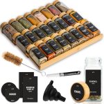 Deco Haus Οργανωτής συρταριού από μπαμπού με βαζάκια μπαχαρικών – 3 βαθμίδων οργανωτής συρταριού – οργανωτής κουζίνας, οργανωτής συρταριού με 24 βαζάκια μπαχαρικών, 280 ετικέτες μπαχαρικών, βούρτσα και χωνί