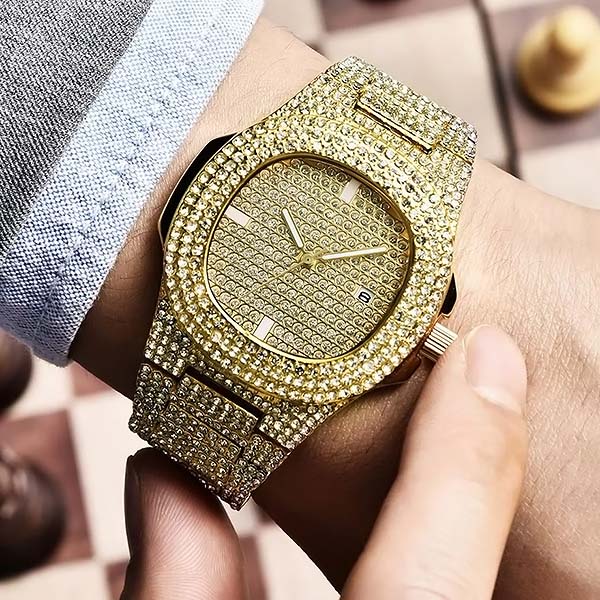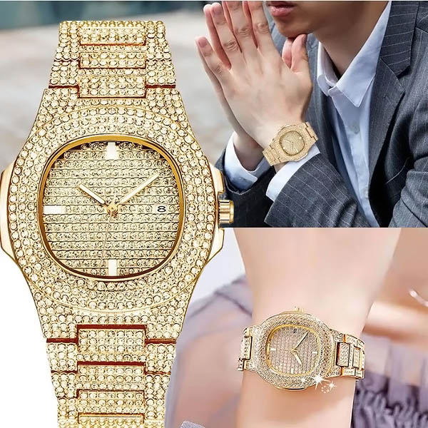 Χιλιάδες αστραφτερά κρύσταλλα μετατρέπουν αυτό το ρολόι σε εντυπωσιακό. Δεν είναι απλώς ένα ρολόι – είναι μια τολμηρή δήλωση πολυτέλειας και κομψότητας.