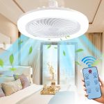 Παρουσιάζουμε έναν μοντέρνο ανεμιστήρα οροφής με φωτιστικό σώμα που χρησιμοποιεί μια τυπική βιδωτή υποδοχή E27 (δεν περιλαμβάνεται).