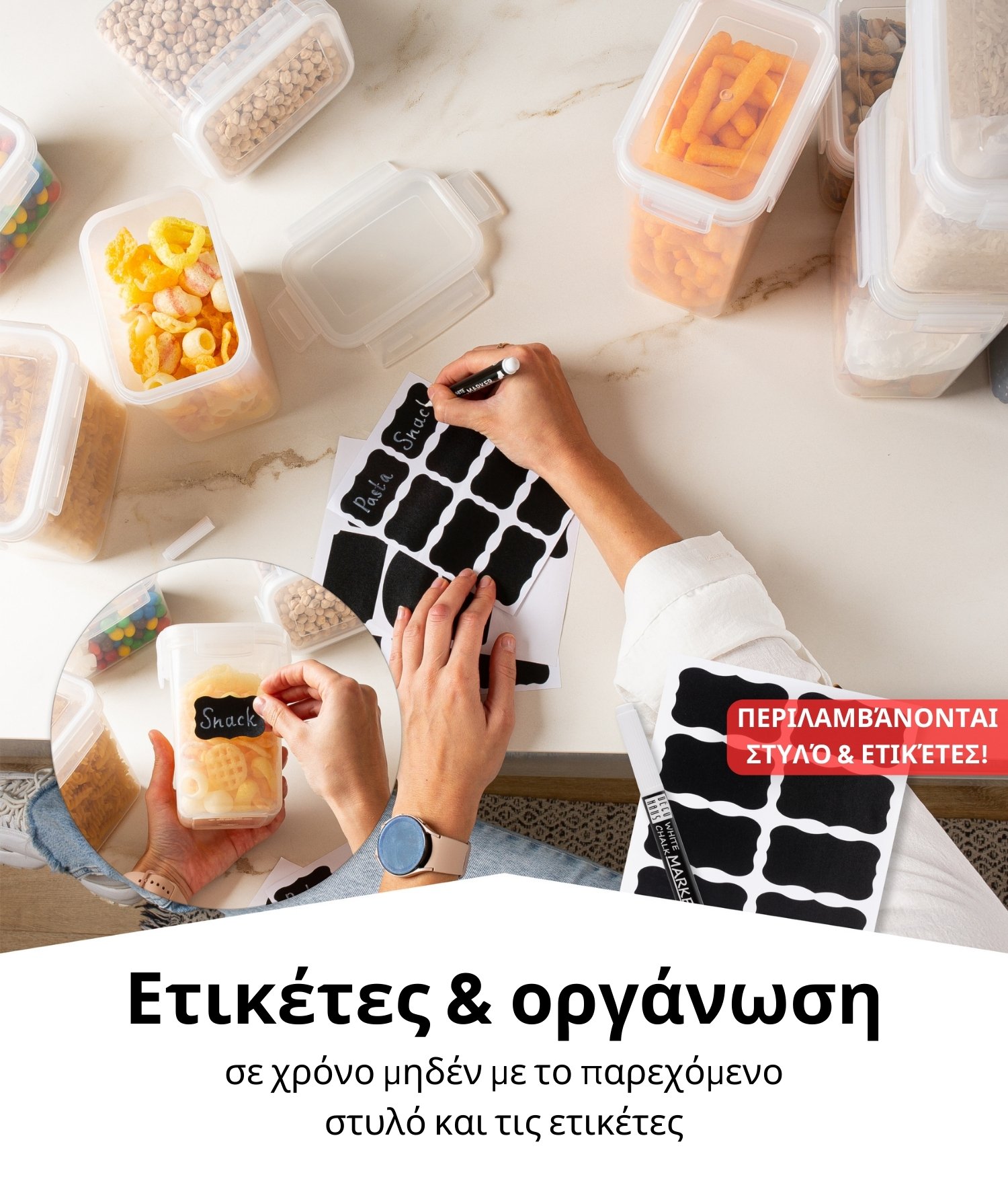 🍱 Αεροστεγές κλείσιμο, BPA-free, επαναχρησιμοποιήσιμες ετικέτες, στυλό και μεζούρες για απόλυτη τάξη και φρεσκάδα στα τρόφιμά σας.