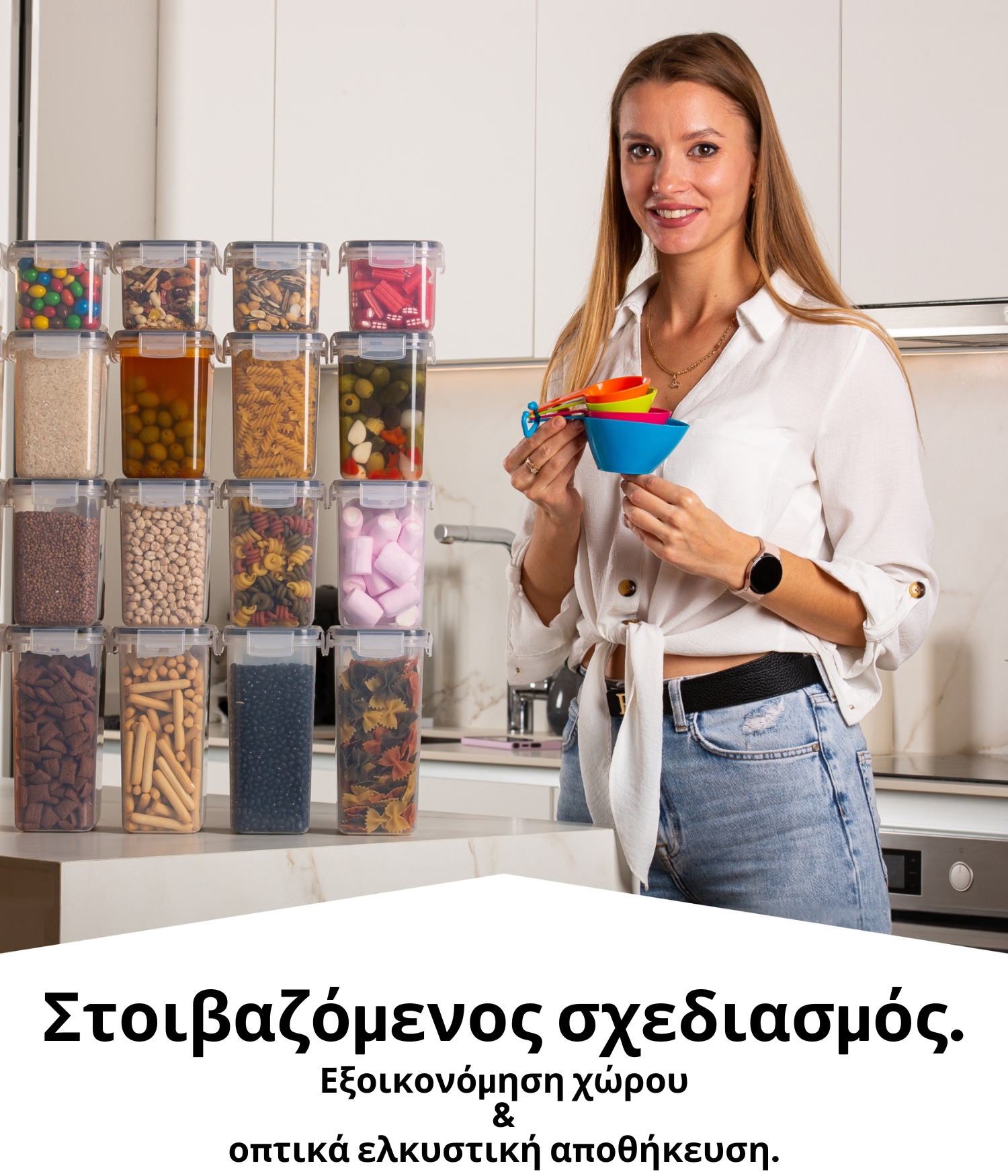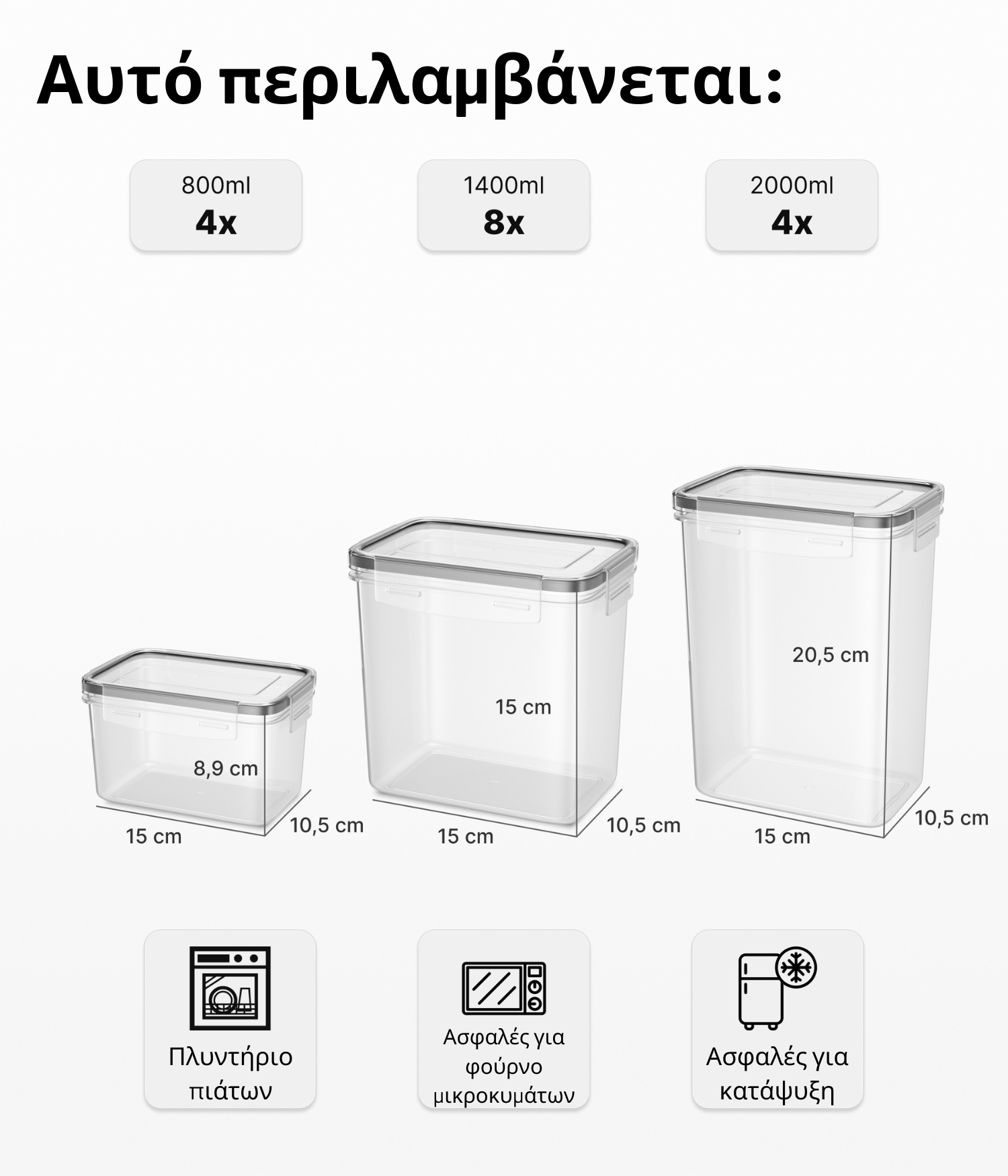 📦 Περιλαμβάνει 4x2L, 8×1.4L, 4×0.8L για ευέλικτη αποθήκευση στην κουζίνα