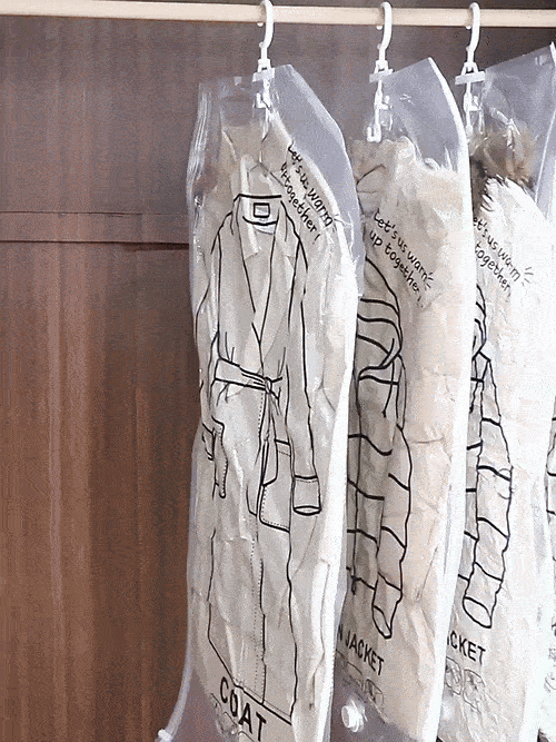 Κουραστήκατε από τις ακατάστατες ντουλάπες; Η VACUHANG παρέχει μια λύση χωρίς προβλήματα για την αποθήκευση των ογκωδών χειμερινών παλτών και σακακιών σας. Αυτές οι σακούλες αποθήκευσης κενού μεγάλης χωρητικότητας είναι ιδανικές για όλα τα μεγέθη ρούχων, εξασφαλίζοντας ότι τα πολύτιμα ρούχα σας δεν θα λερωθούν καθ’ όλη τη διάρκεια του έτους.