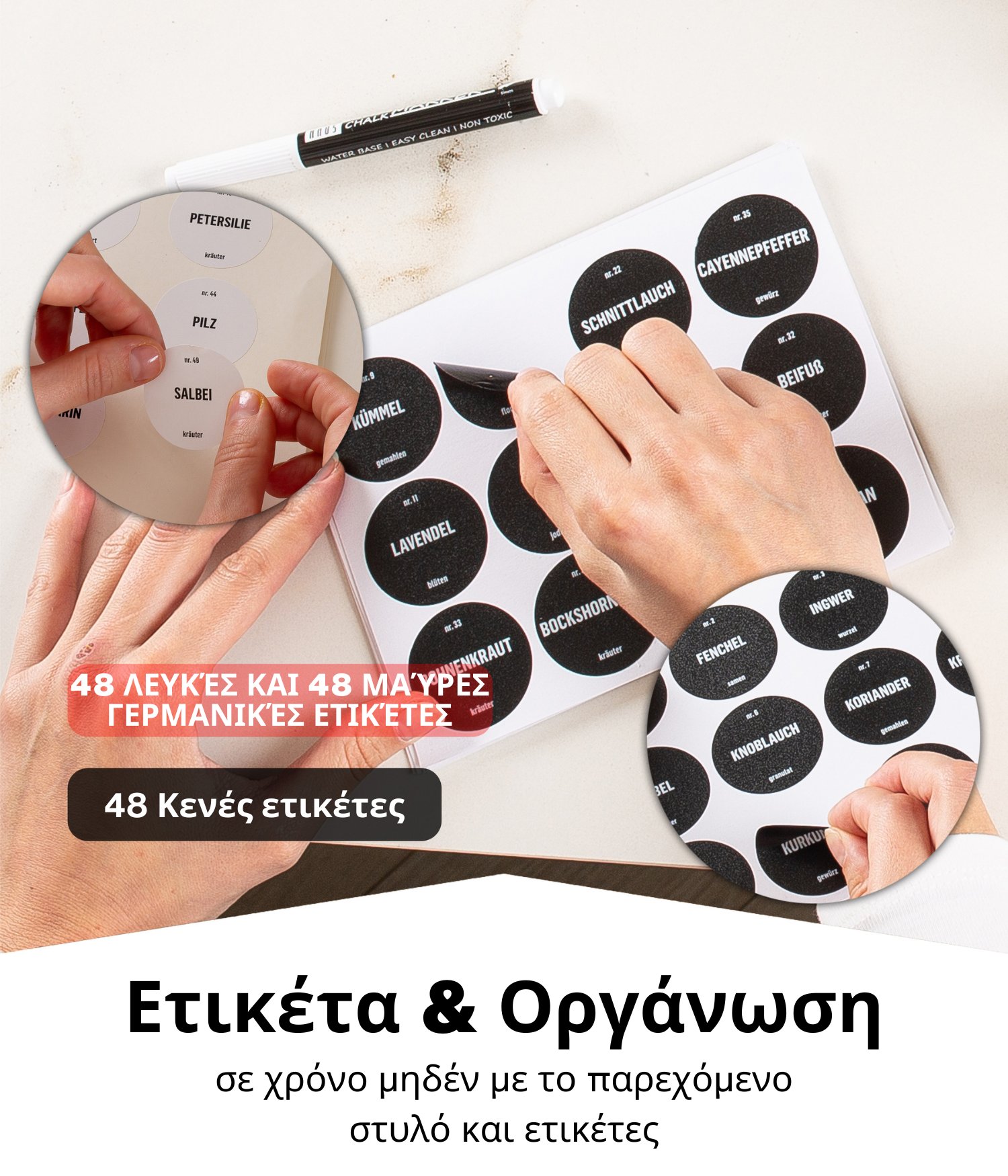 🫙 Εύκολη πρόσβαση και τάξη στην κουζίνα σας. Περιλαμβάνονται 144 ετικέτες, στυλό κιμωλίας και χωνί.