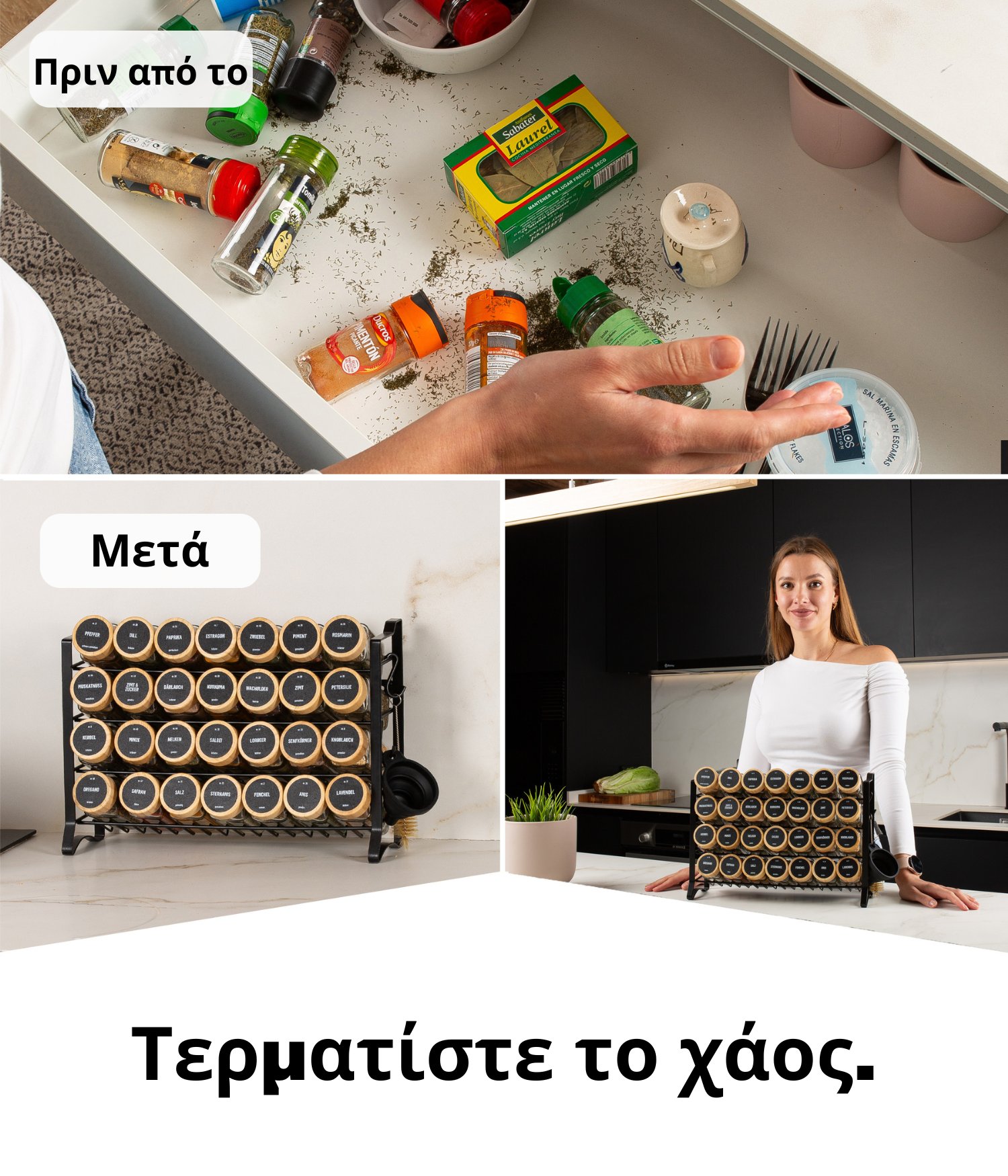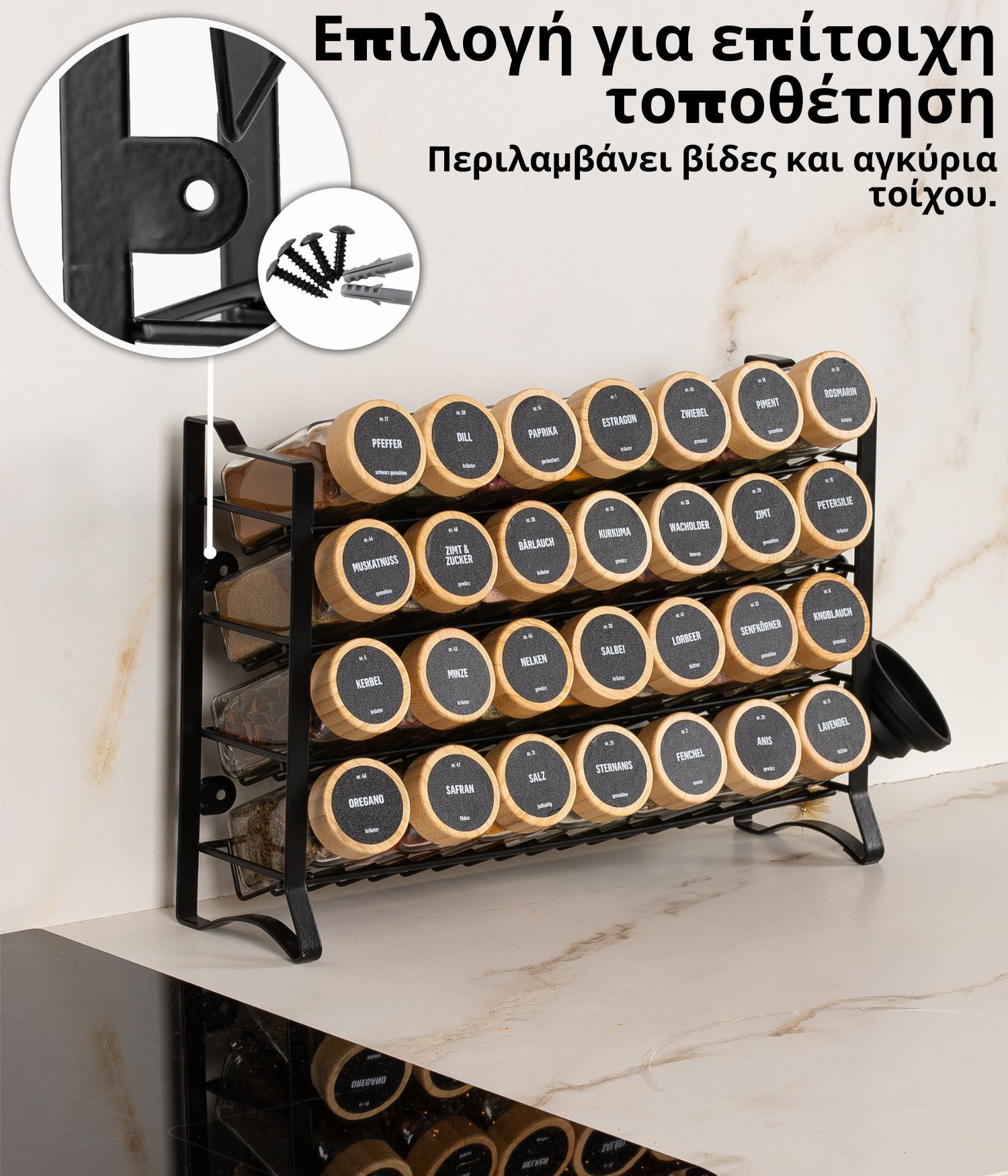 🫙 Οργανώστε τα μπαχαρικά σας σε 28 βάζα με ράφι 4 επιπέδων!