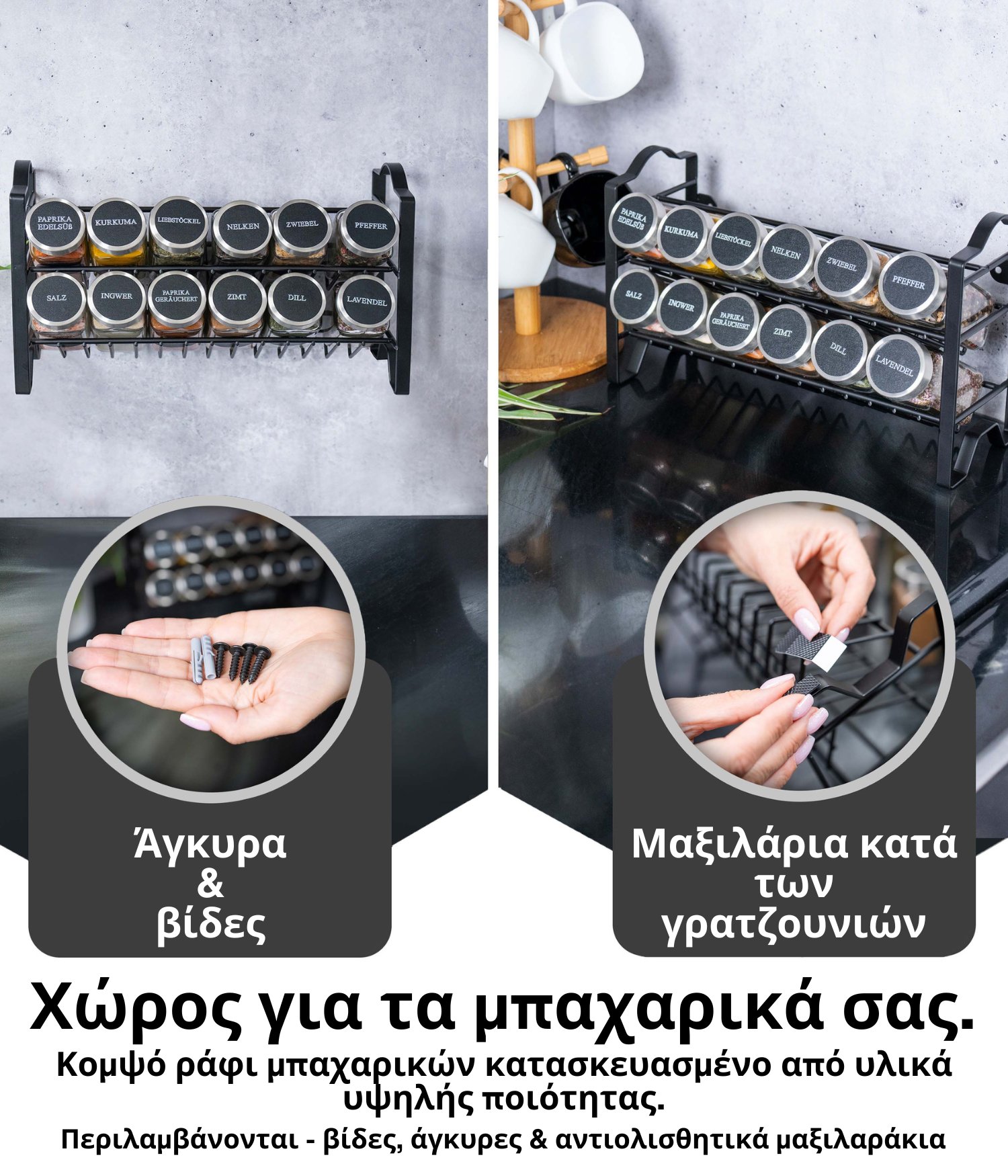 🫙 Τακτοποιήστε τα μπαχαρικά σας με 12 βαζάκια και ράφι 2 επιπέδων!