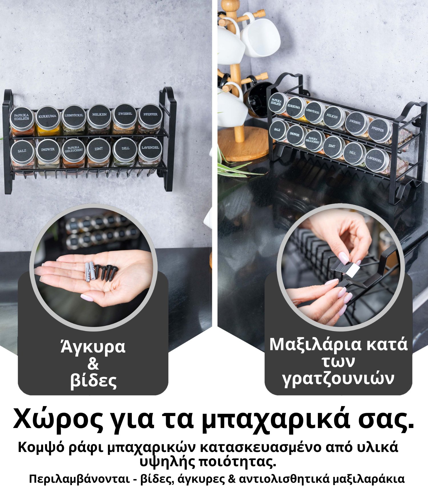 - Άπλετος χώρος για τα μπαχαρικά σας – μήπως δεν έχετε ποτέ κοντά σας τα μπαχαρικά που χρειάζεστε; Οργανώστε τα μπαχαρικά σας απλά αλλά τακτοποιημένα με αυτό το ράφι μπαχαρικών δύο επιπέδων, το οποίο μπορεί να τοποθετηθεί στον πάγκο ή να κρεμαστεί στον τοίχο.