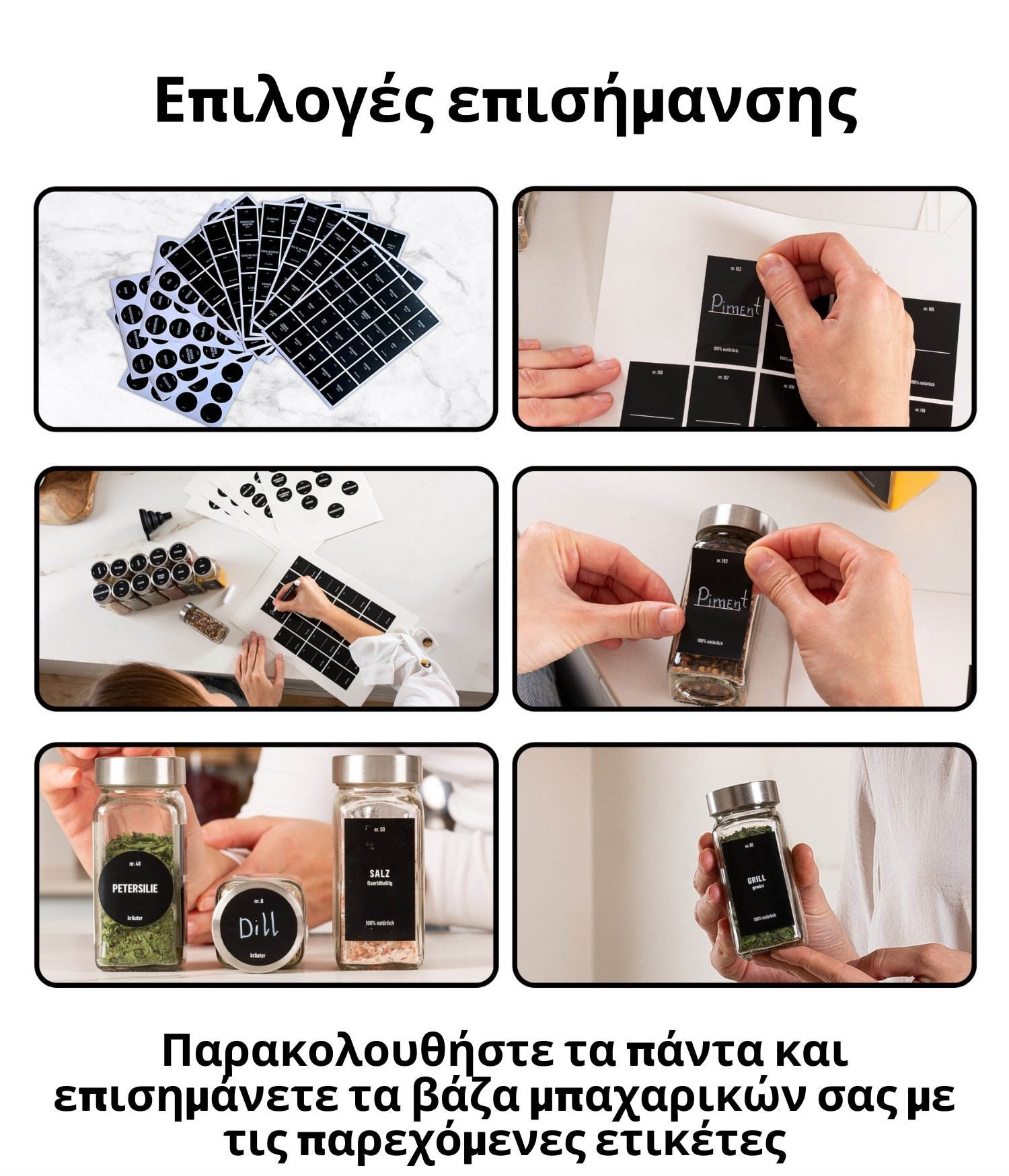 ✍️ Επαγγελματική σήμανση: 200 ετικέτες μπαχαρικών + στυλό κιμωλίας για εύκολη αναγνώριση.