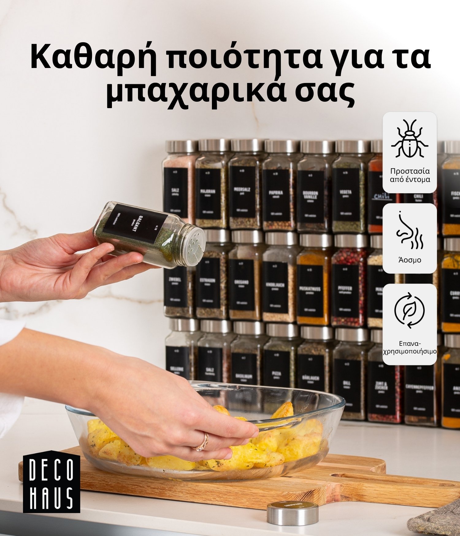 Επαναστατήστε το μαγείρεμά σας με τα μπαχαρικά που μπορείτε να αποθηκεύσετε στο σετ γυάλινων βάζων μπαχαρικών DECO HAUS!