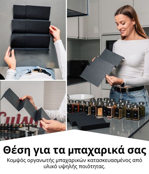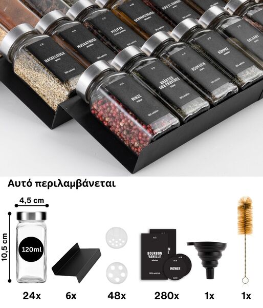 - ΟΡΓΑΝΩΣΤΕ ΤΗΝ ΚΟΥΖΙΝΑ ΣΑΣ – Αυτό το σετ περιέχει 6 οργανωτές συρταριών, 24 βάζα μπαχαρικών, 280 μαύρες ετικέτες, μια βούρτσα, δύο σέικερ και ένα χων