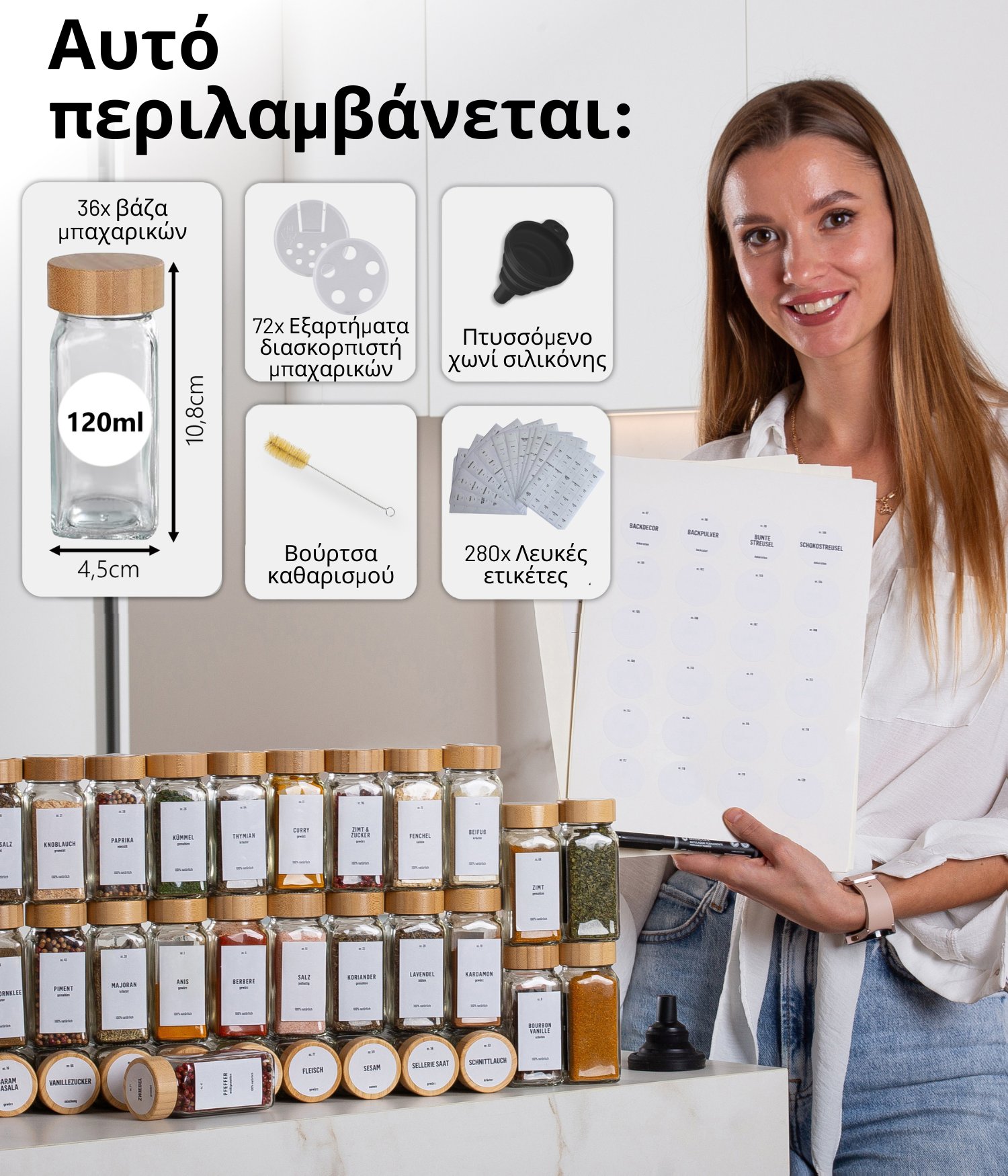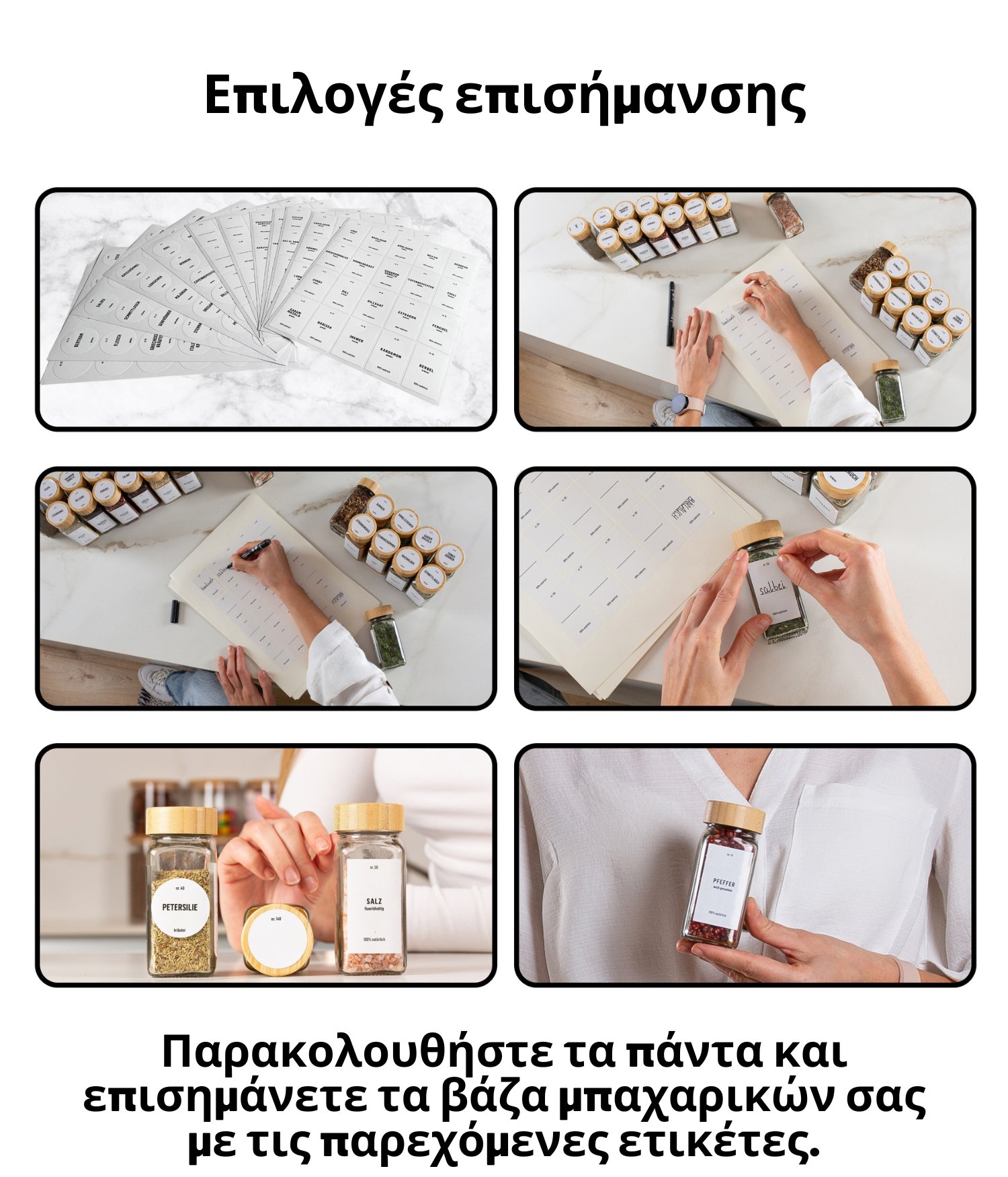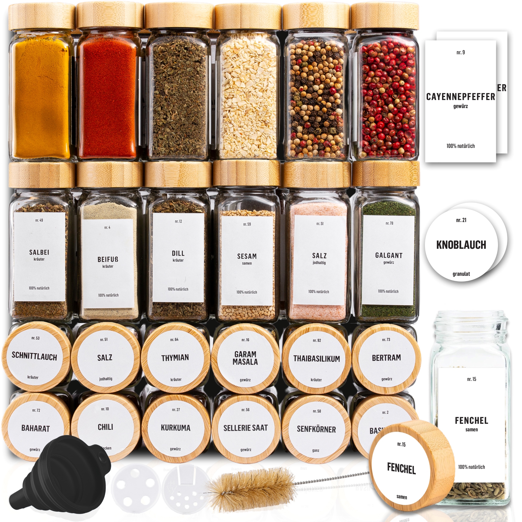- ΕΠΙΣΗΜΑΝΕΤΕ ΤΑ ΜΠΑΧΑΡΙΚΑ ΣΑΣ ΩΣ ΕΠΑΓΓΕΛΜΑΤΙΑΣ! – Το σετ βάζων μπαχαρικών με καπάκια περιλαμβάνει επίσης 200 ετικέτες στα γερμανικά με τυπωμένα τα ονόματα των πιο κοινών μπαχαρικών και 80 κενές ετικέτες.