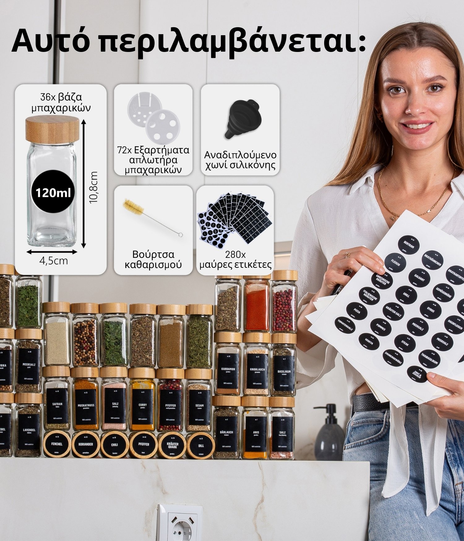 🍴 Οργανώστε την κουζίνα σας με 36 γυάλινα βάζα μπαχαρικών χωρίς BPA