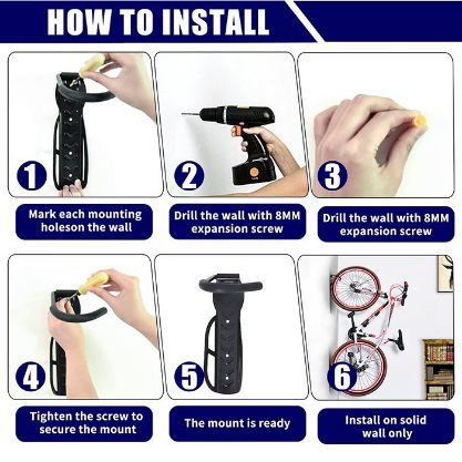 - Η συσκευασία περιλαμβάνει: 1x επιτοίχια βάση ποδηλάτου με γάντζο, 4x βίδα τοίχου